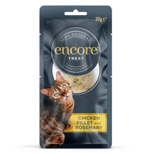 Show your cat some love with a tasty Encore treat. Our Chicken Fillet with Rosemary are exactly that – 100% Chicken Breast, Rosemary, 100% natural and nothing else. Serve whole, break into pieces or sprinkle over food – cats can’t get enough of them. Chicken Breast 99.7%, Rosemary 0.3%