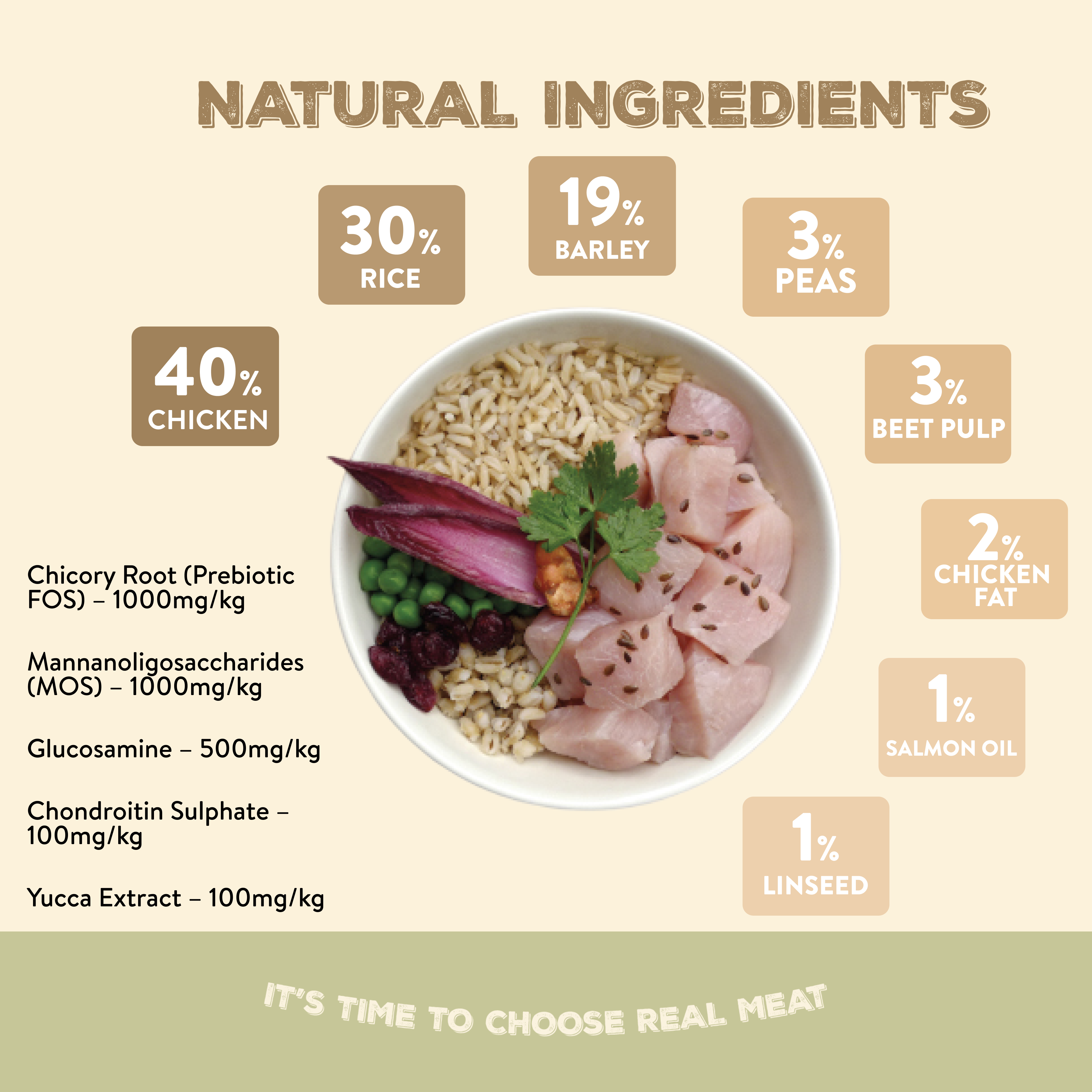 - 40% Chicken (Including 14% Freshly Prepared)