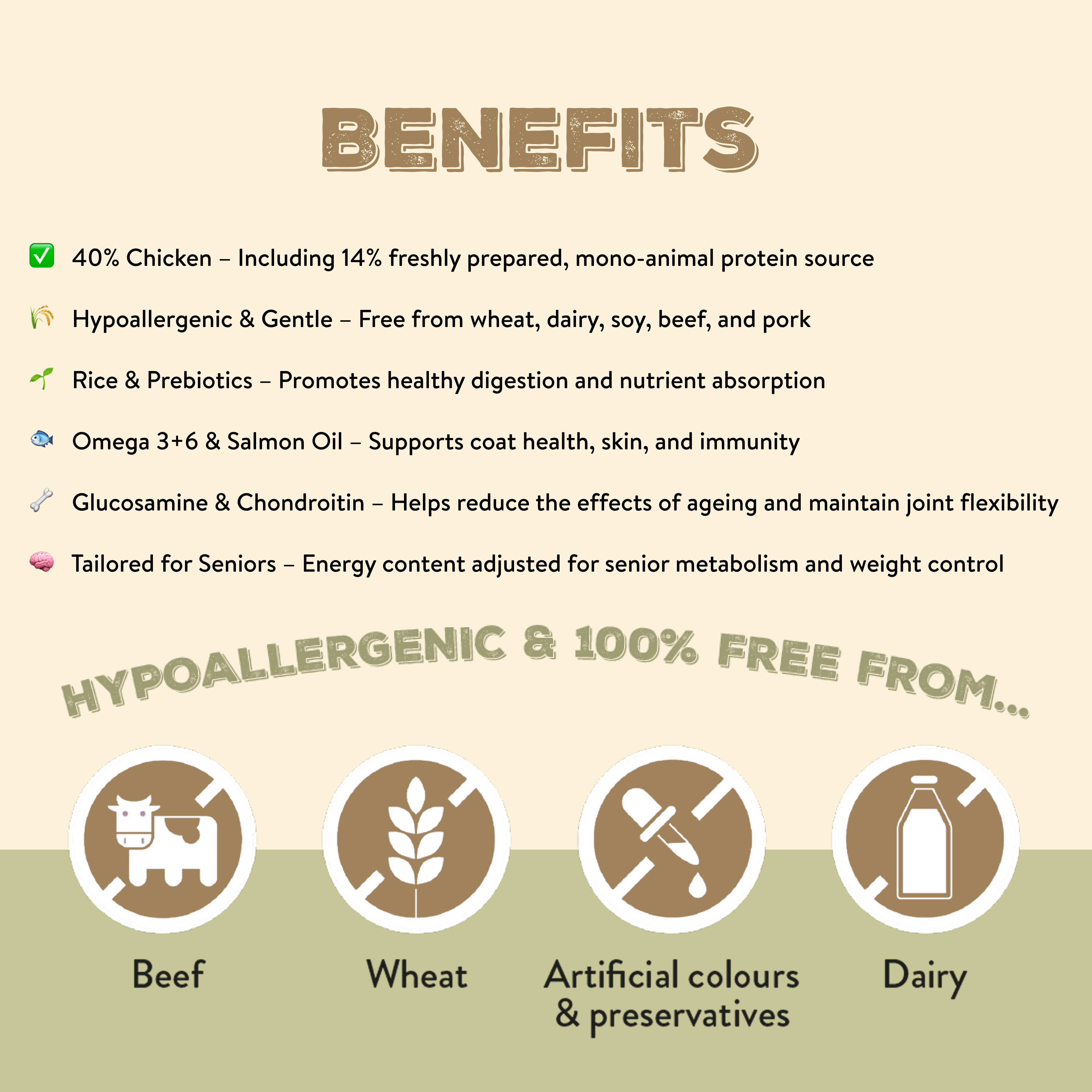 - Free from wheat, dairy, soy, beef, and pork to reduce digestive sensitivities.