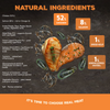 Chicken (52%), salmon (8%), Vegetable Glycerin (from vegetable oil), sweet potato, peas, potato starch, salt, dried kelp (1%), green-lipped mussel (1%), salmon oil (0.09%), turmeric, glucosamine (0.012%), chondroitin (0.006%), sunflower oil (0.025%).