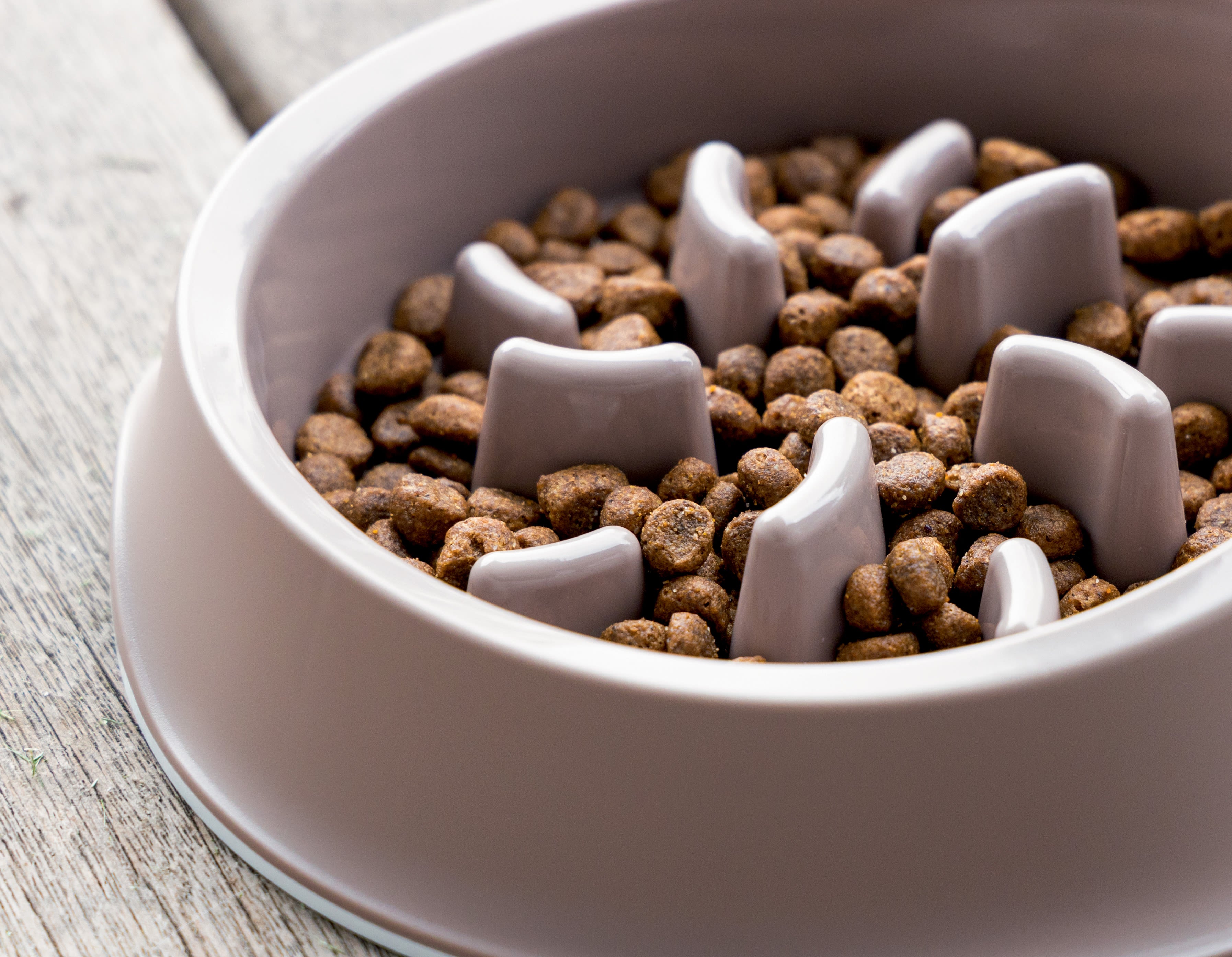 Anti-gulping bowl for dogs and cats with a design made for helping our 4-legged friend to eat slowly, turning meals into a game and keeping the mind active. It helps to prevent from gorging and gastrointestinal disorders. Equipped with anti-slip rubber rim and suitable for food contact. BPA FREE.