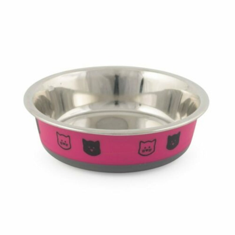Fusion Stainless Steel Cat Dish Pink/grey 12cm