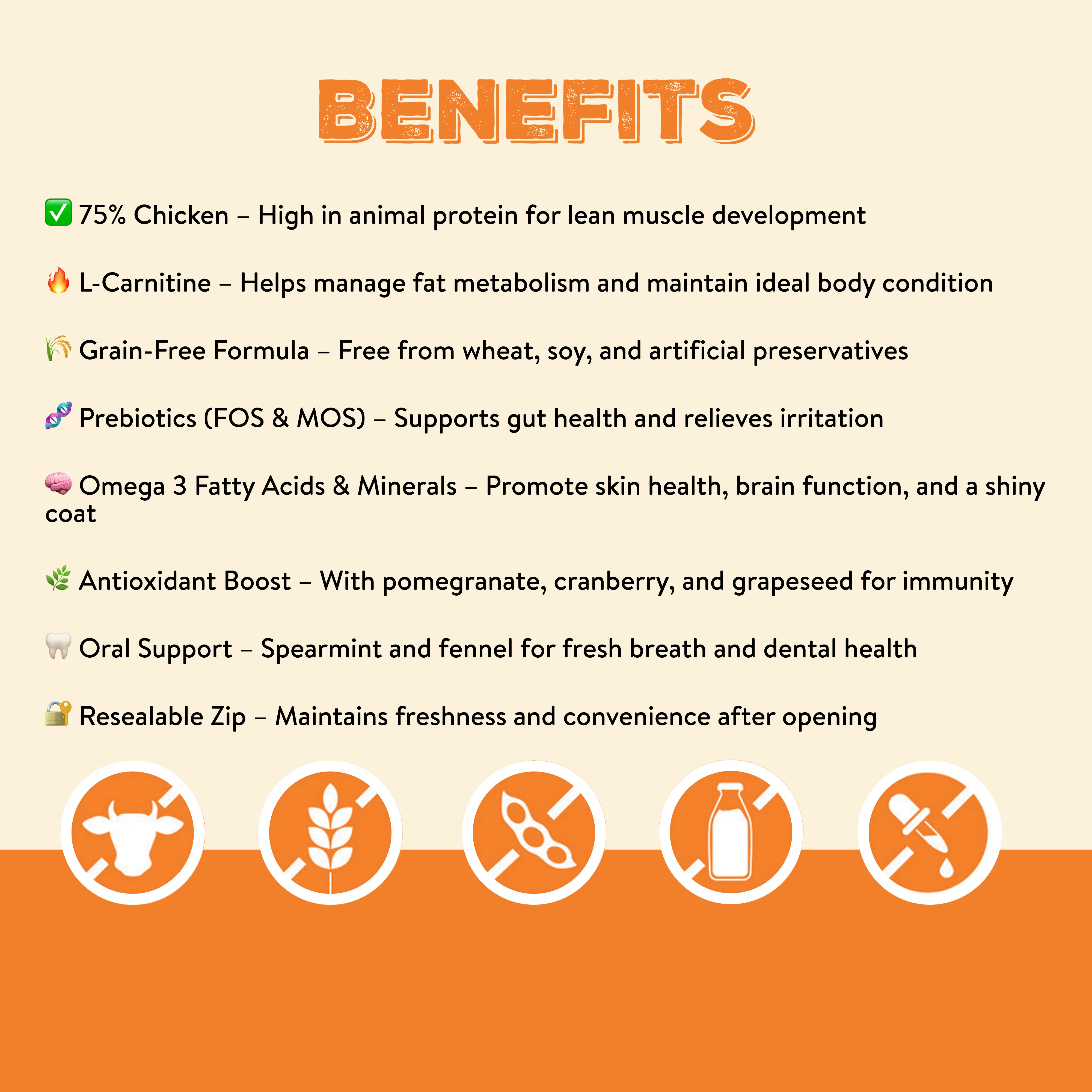 Grain-Free Formula: No artificial colours, preservatives, and grains, making it ideal for sensitive dogs.