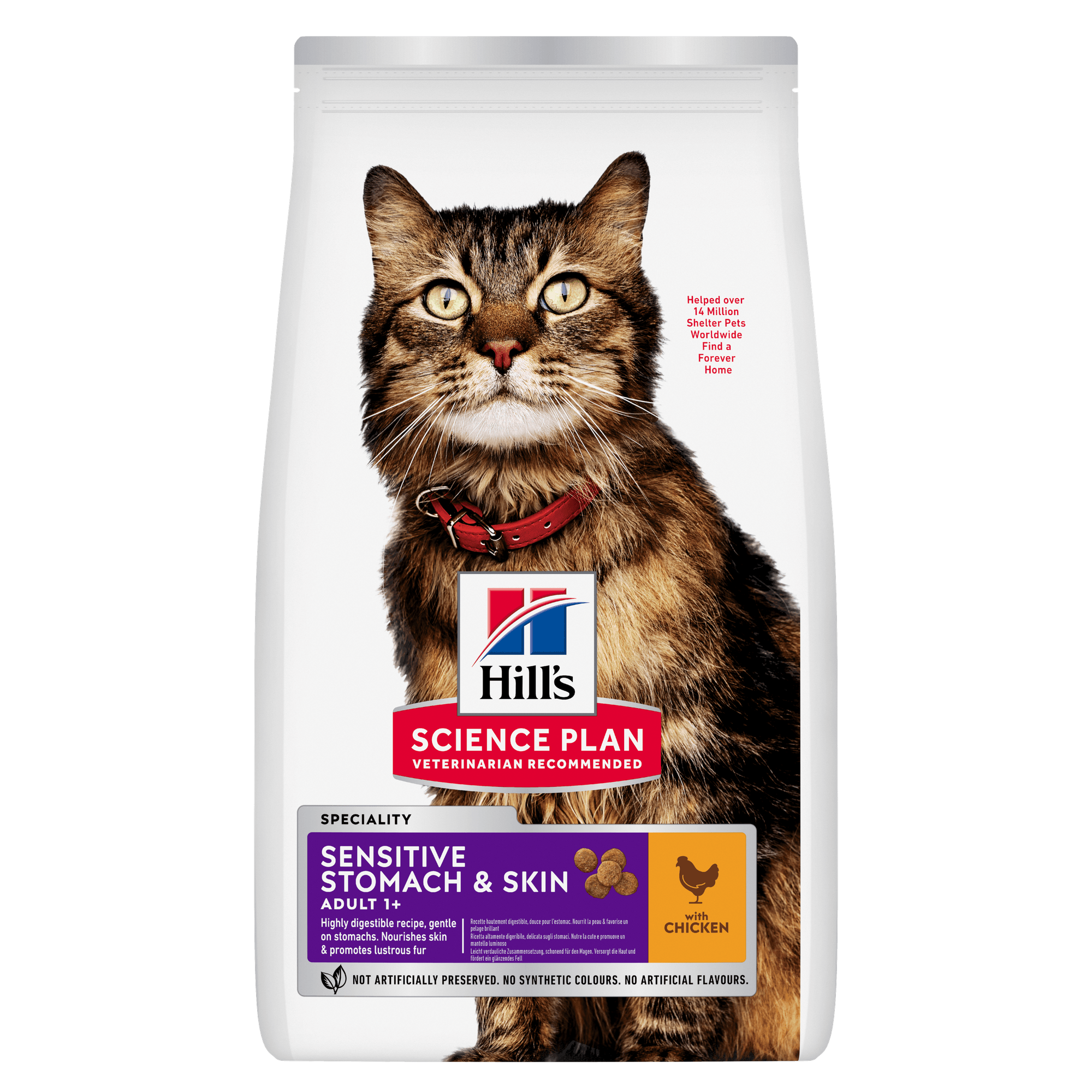 Your cat's stomach health is a vital part of his or her everyday life, which is why Hill's Science Plan SENSITIVE STOMACH & SKIN dry cat food provides optimal digestive health while nourishing skin & promoting a lustrous coat. This wholesome recipe, with added beet pulp, is easily digestible for better nutrient absorption and is gentle on the stomach. It is also packed with vitamin E & Omega-6 fatty acids to help your grown cat maintain lustrous fur and healthy skin. Finally, this formula is made with natural ingredients with added vitamins, minerals and amino acids.