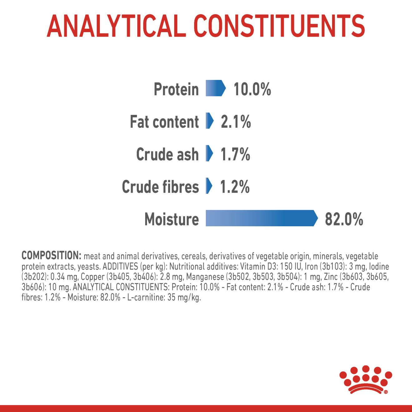 ROYAL CANIN Light Weight Care in Gravy is a nutritionally complete and balanced formula specially designed to help limit weight gain and support healthy weight maintenance. The specially adapted protein content in this formula helps to maintain your cats muscle mass to help keep them at a healthy weight. ROYAL CANIN Light Weight Care in Gravy is also enriched with L-carnitine an amino acid involved in healthy fat metabolism. ROYAL CANIN Light Weight Care has proven results. Our study showed that over 90% of participating cats achieved a healthier weight in just 8 weeks of being fed with the Light Weight Care nutritional programme (combining both the dry kibble and wet food formulas). ROYAL CANIN Light Weight Care is also available in jelly, or as a dry kibble diet. A mixture of both wet food and dry food provides the variety cats love. Royal Canin internal study.