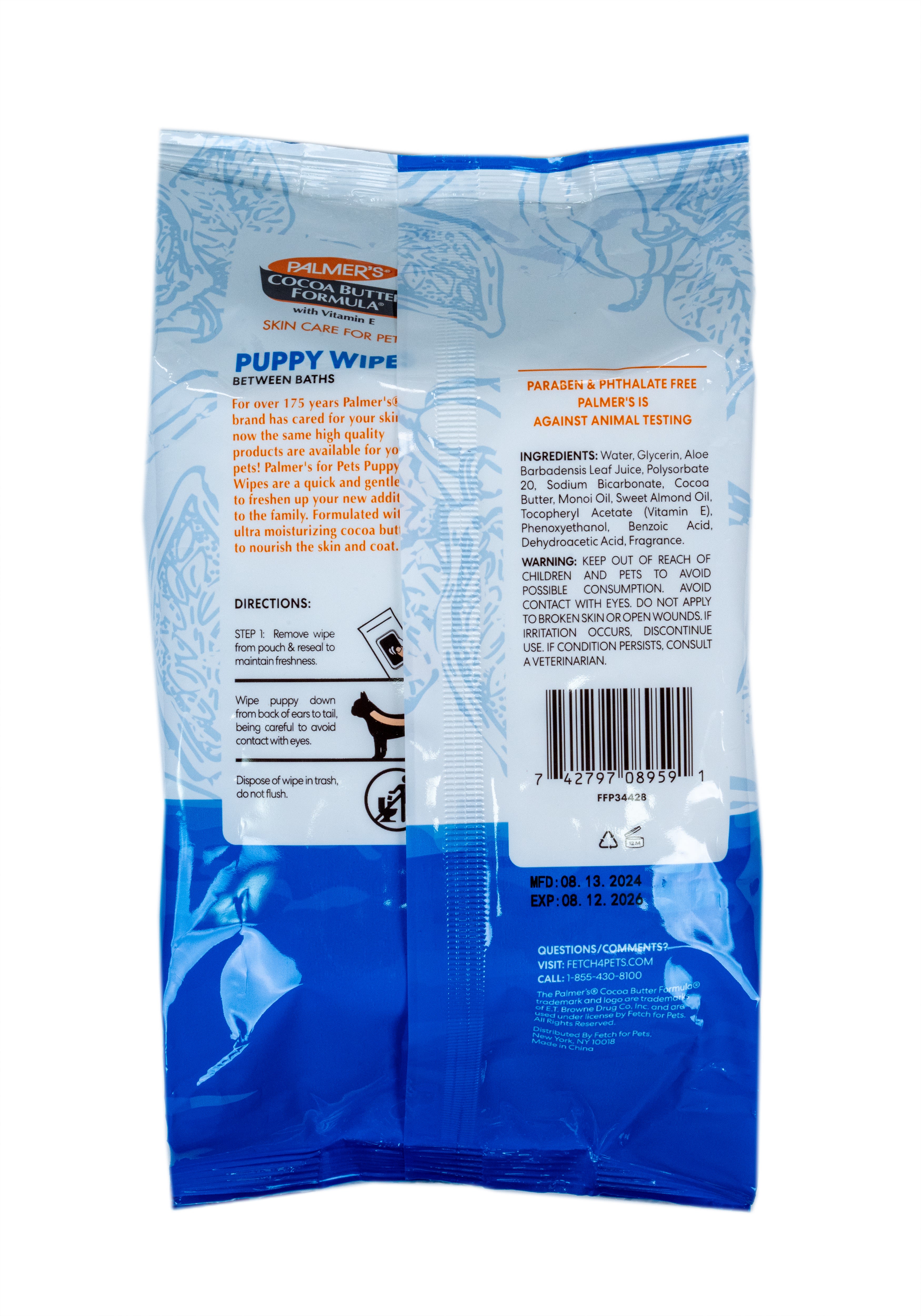 Easy To Use Puppy Cleaning Wipes: Skin care for pets couldn't be easier with Palmer's cocoa butter puppy wipes. Follow instructions on packaging for easy directions.