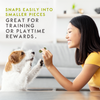 Designed for versatility, Rattlesnaps feature a unique segmented shape that can be served whole as a long-lasting chew for large breeds, broken in half for medium and small dogs, or separated into smaller pieces for training rewards. The built-in rattle sound adds an interactive element, capturing your dog's attention for an engaging and enjoyable snack time.