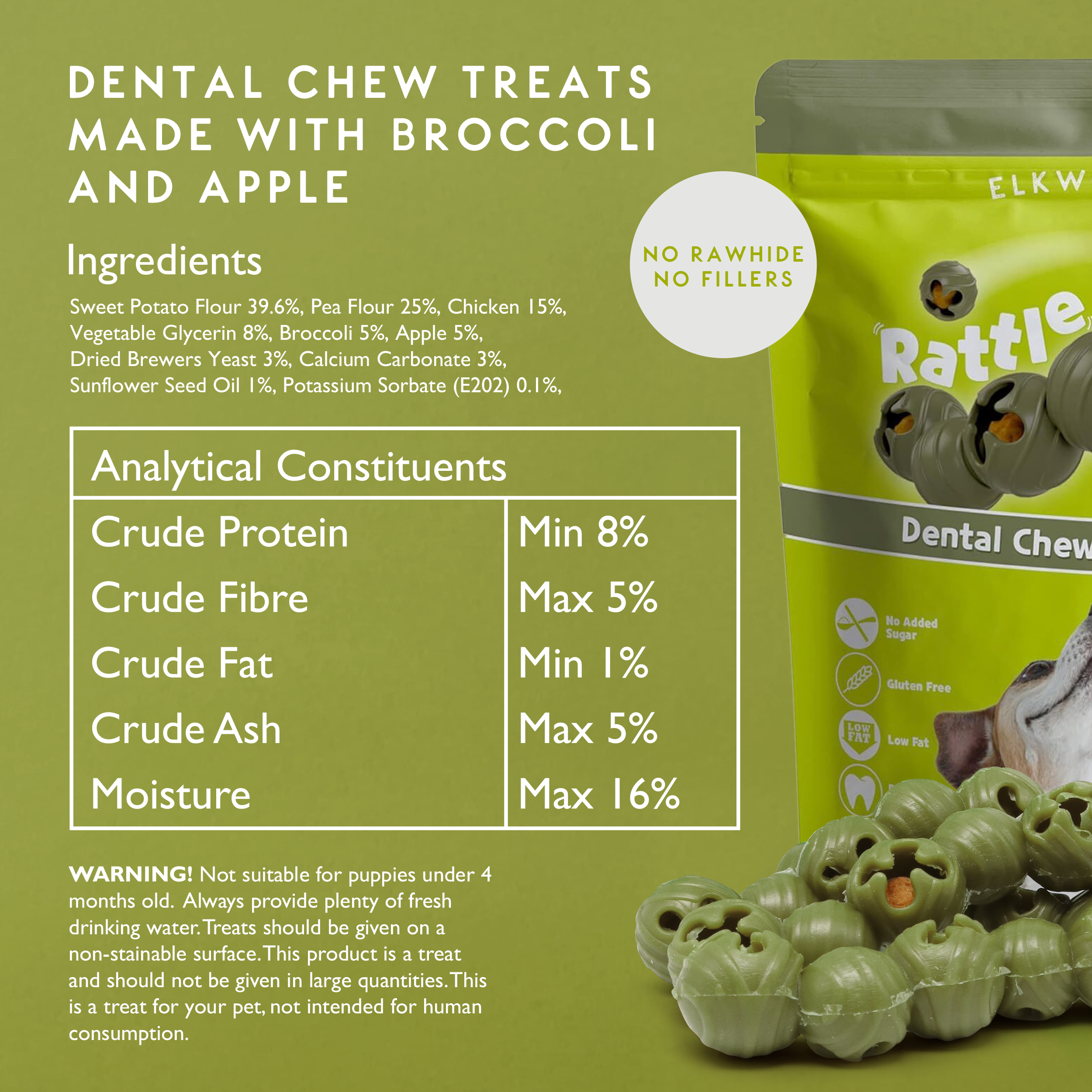 Elkwood Dog Treats Broccoli & Apple Rattlesnaps | Petwell