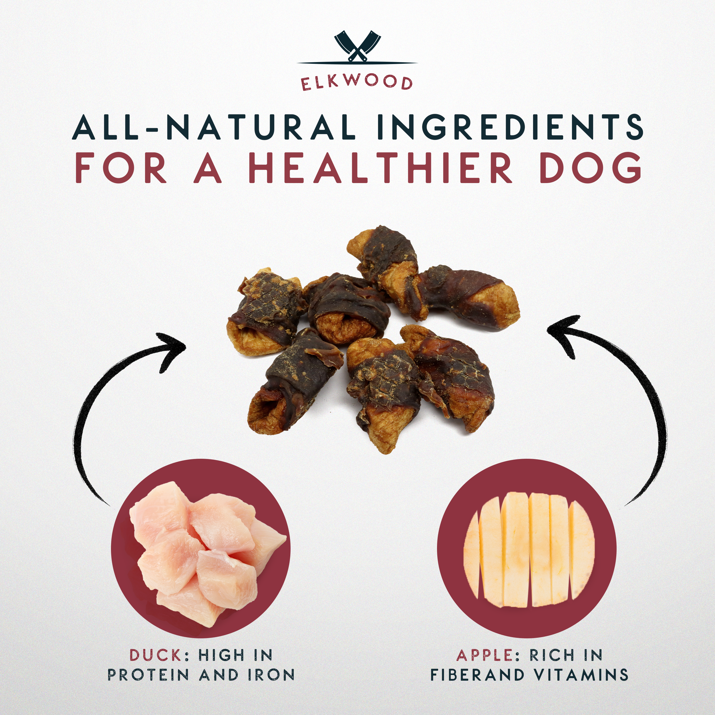 Elkwood Dried Apple Chunks Wrapped with Duck Jerky Dog Treats