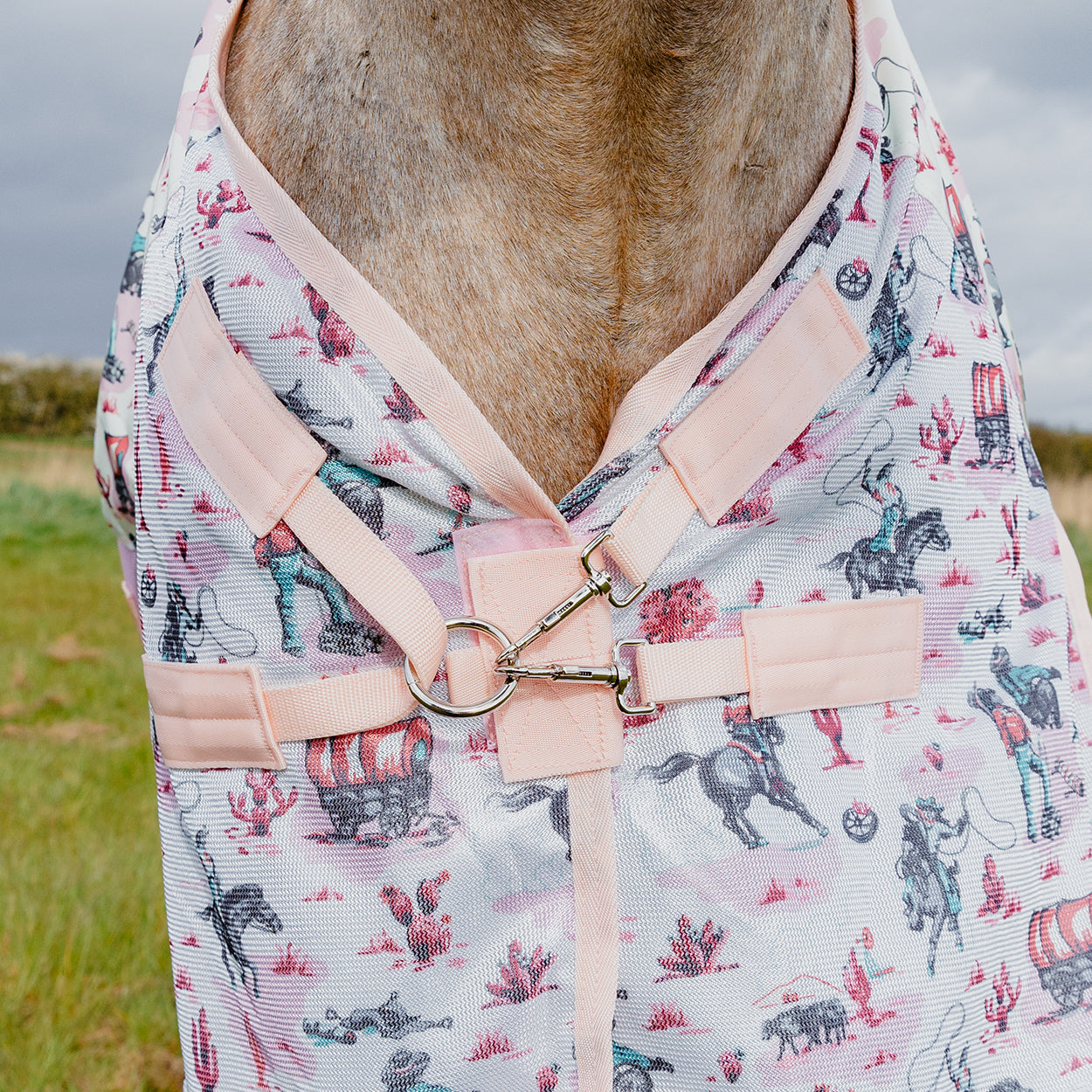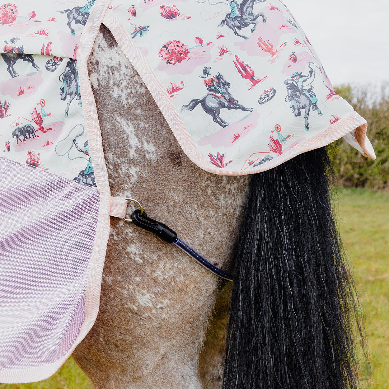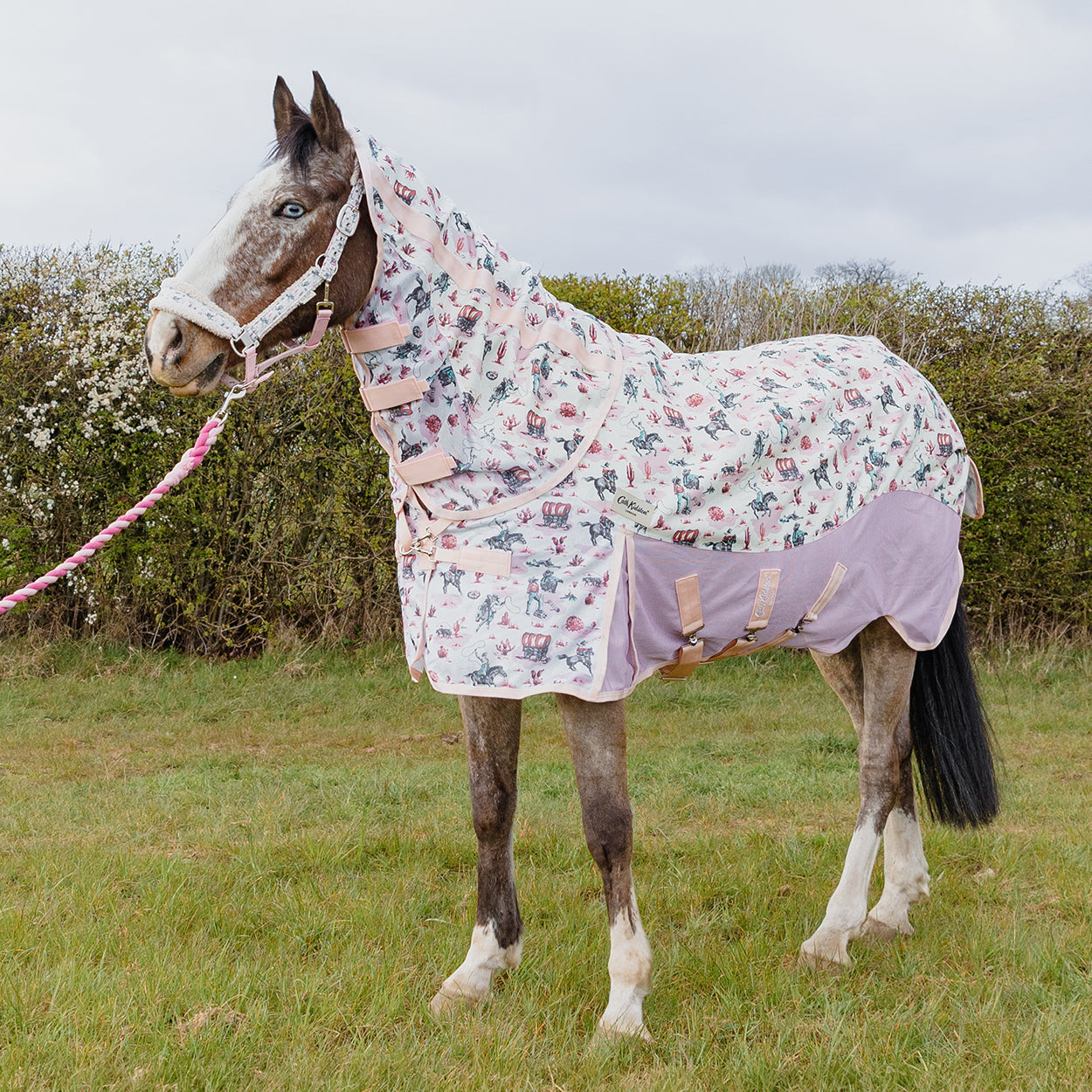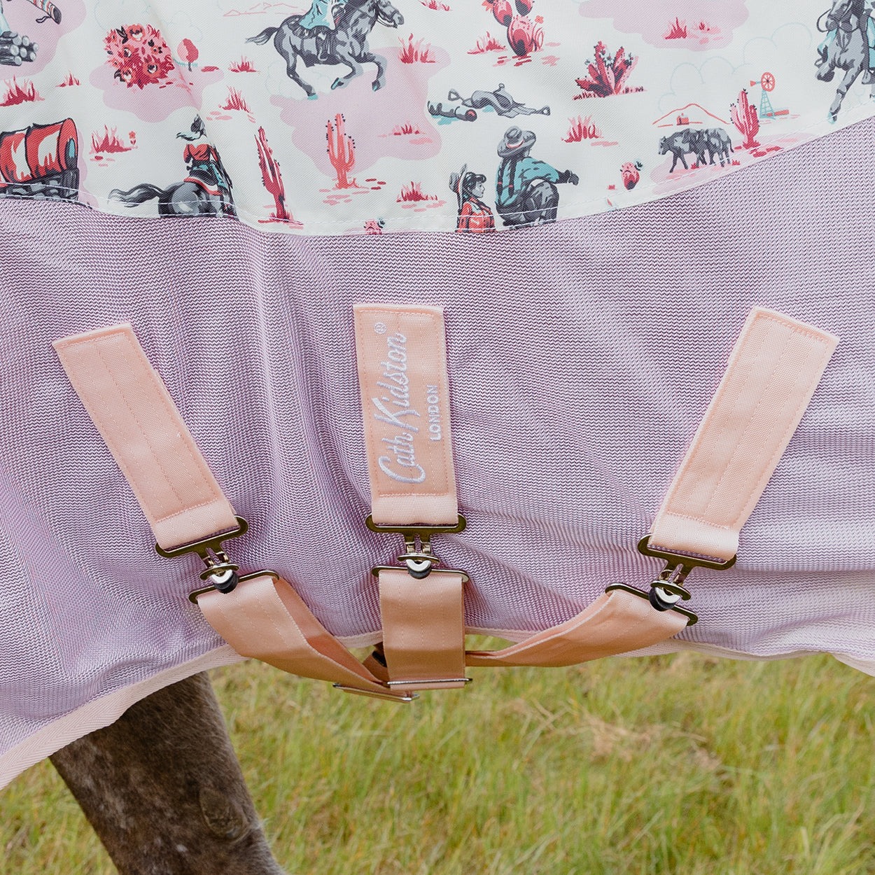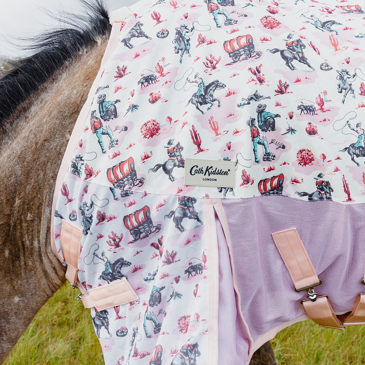 Step into every season with the Cath Kidston Cowgirl Rain Sheet & Fly Rug Combo. Inspired by the much-loved ‘Cowboy’ print first introduced in 2001, the reimagined Cowgirl design celebrates confident femininity in a distinctive pink landscape — capturing the nostalgic joy and spirited strength that have defined Cath Kidston for over 30 years. It’s a turnout essential with unmistakable personality, perfect for riders who want their horse’s wardrobe to feel just as special as their own.