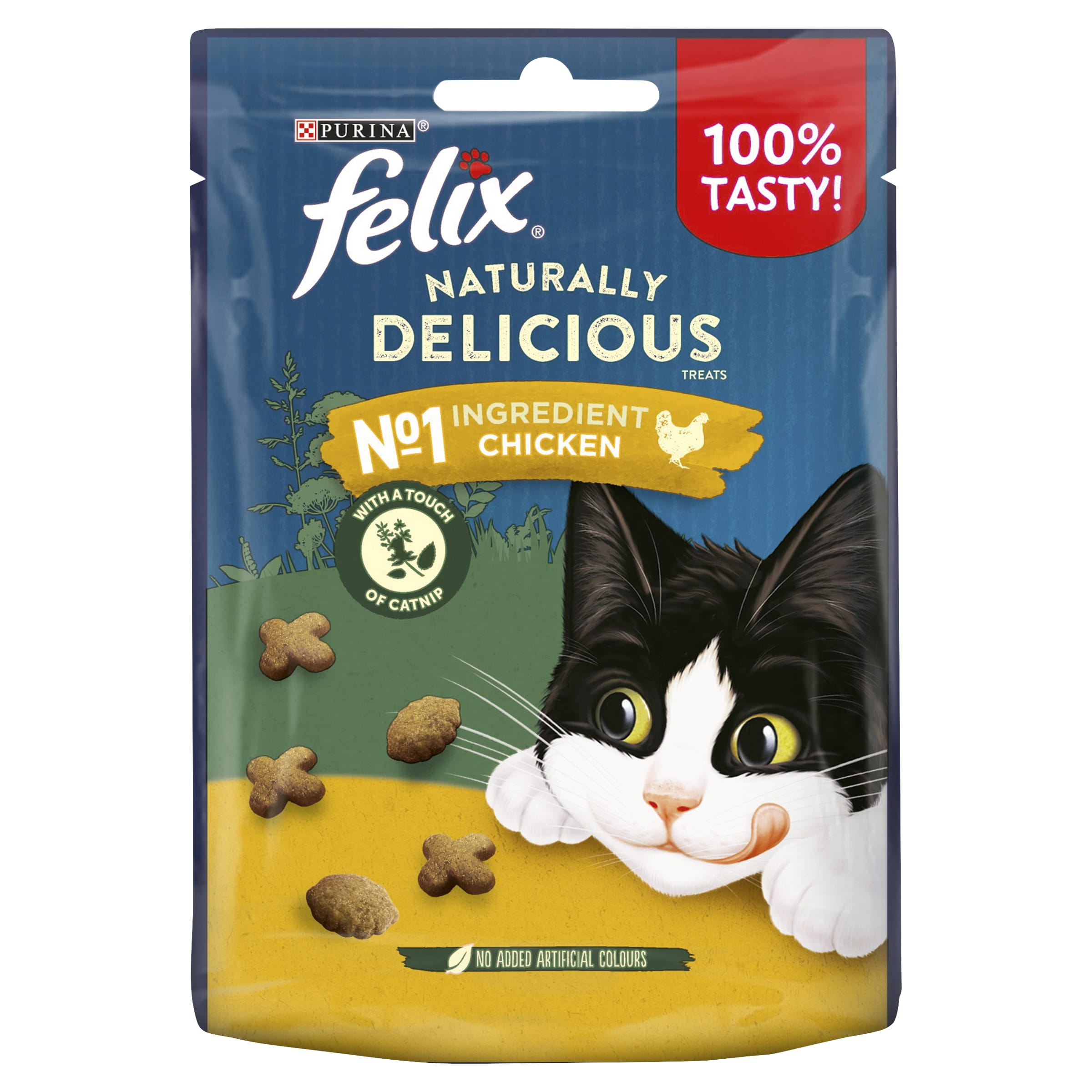 Felix® Naturally Delicious treat recipes are made with high quality ingredients and with no added artificial colours.These wholesome treats with quality chicken as the number one ingredient and with a touch of catnip, are a great opportunity to share a wonderful moment together.