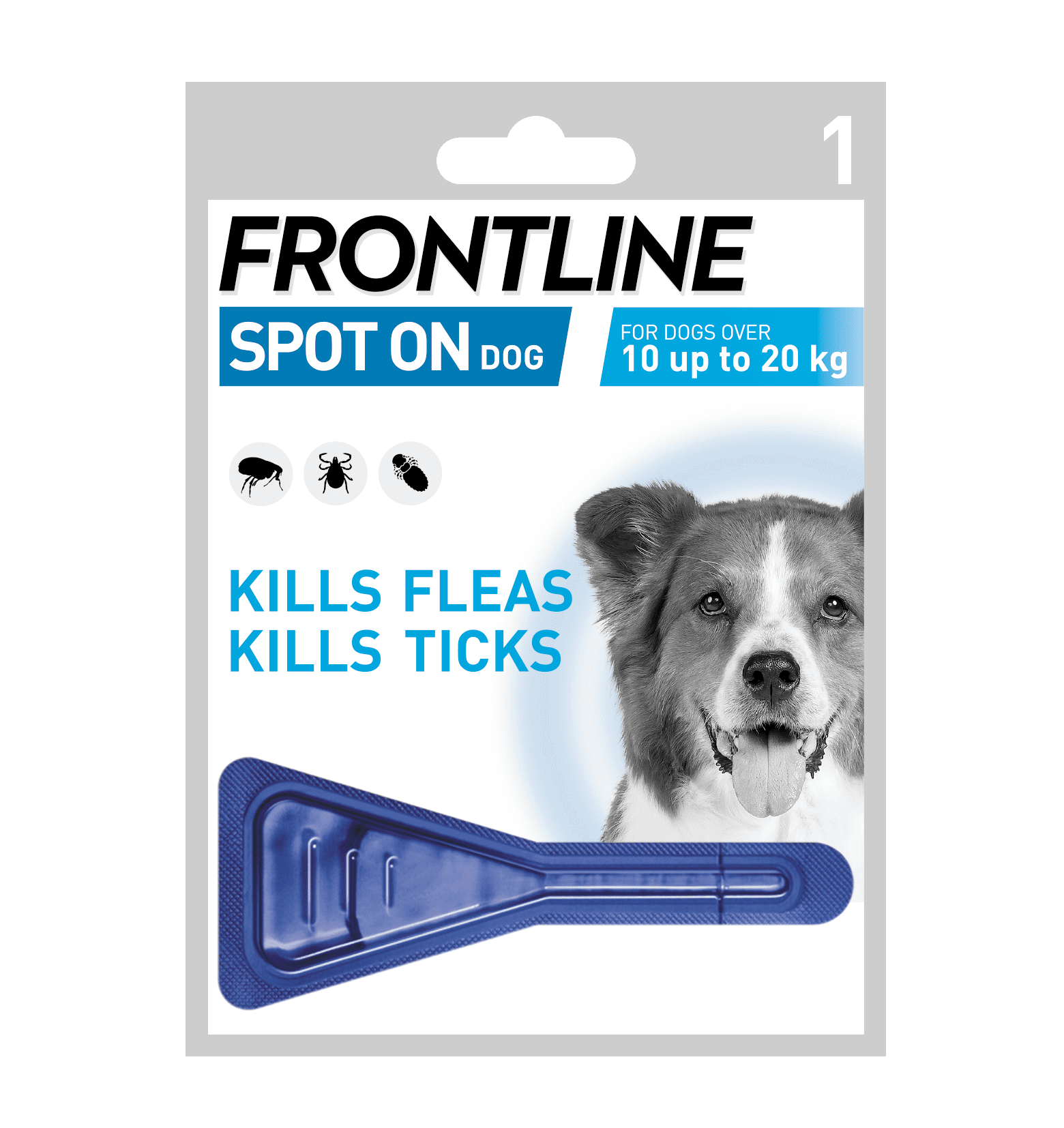 - FRONTLINE® SPOT-ON Flea & Tick Treatment for Medium Dogs (10kg-20kg): 1 Pipette, 3 Pipettes, 6 Pipettes