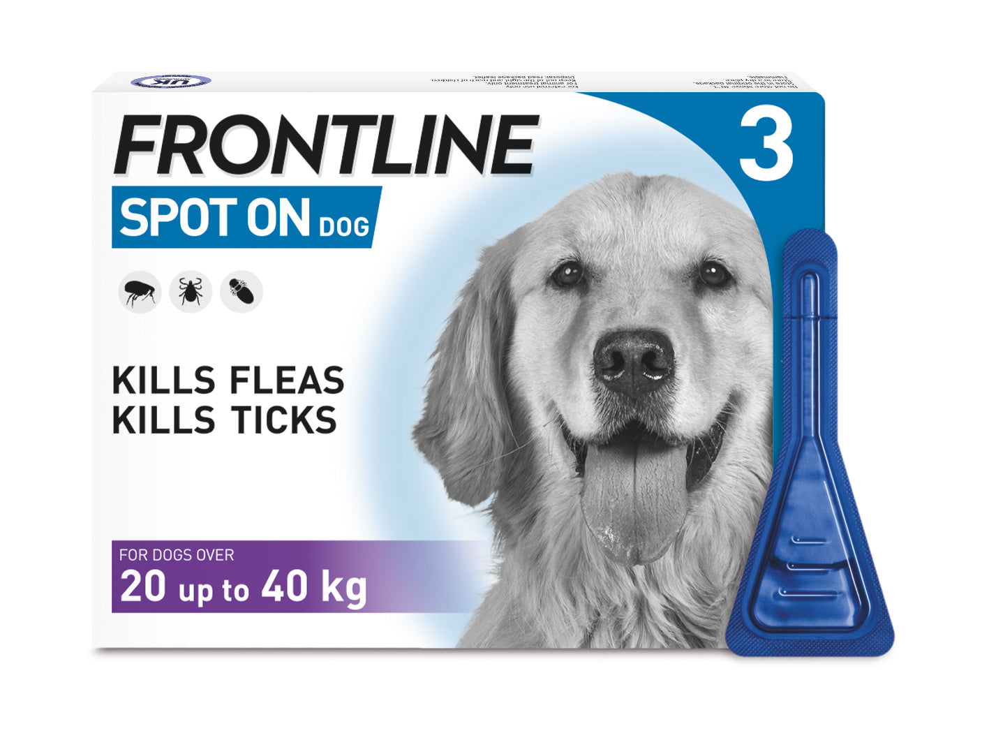 - FRONTLINE® SPOT-ON Flea & Tick Treatment for Large Dogs (20kg-40kg): 1 Pipette, 3 Pipettes, 6 Pipettes
