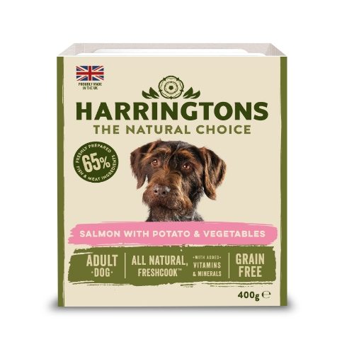 Harringtons Complete Wet Salmon amp Potato Is A Complete Dog Food Suitable For All Adult Dogs. Formulated To A Grain Free Recipe With 60% Salmon And 100% Natural Healthy Ingredients. With Green Lipped Mussel A Rich Source Of Omega Fats, Glucosamine And Chondroitin, Green Tea For Natural Antioxidants, Rosehips For Vitamin C, Chicory Extract For Digestive Health, Dried Tomato For Natural Lycopene, Kelp For Natural Minerals And Trace Elements And Botanical Herbs Including Parsley, Basil And Rosemary. With No Soya, No Diary And No Artificial Colours, Flavours Or Preservatives. Made With Pride In The Uk.