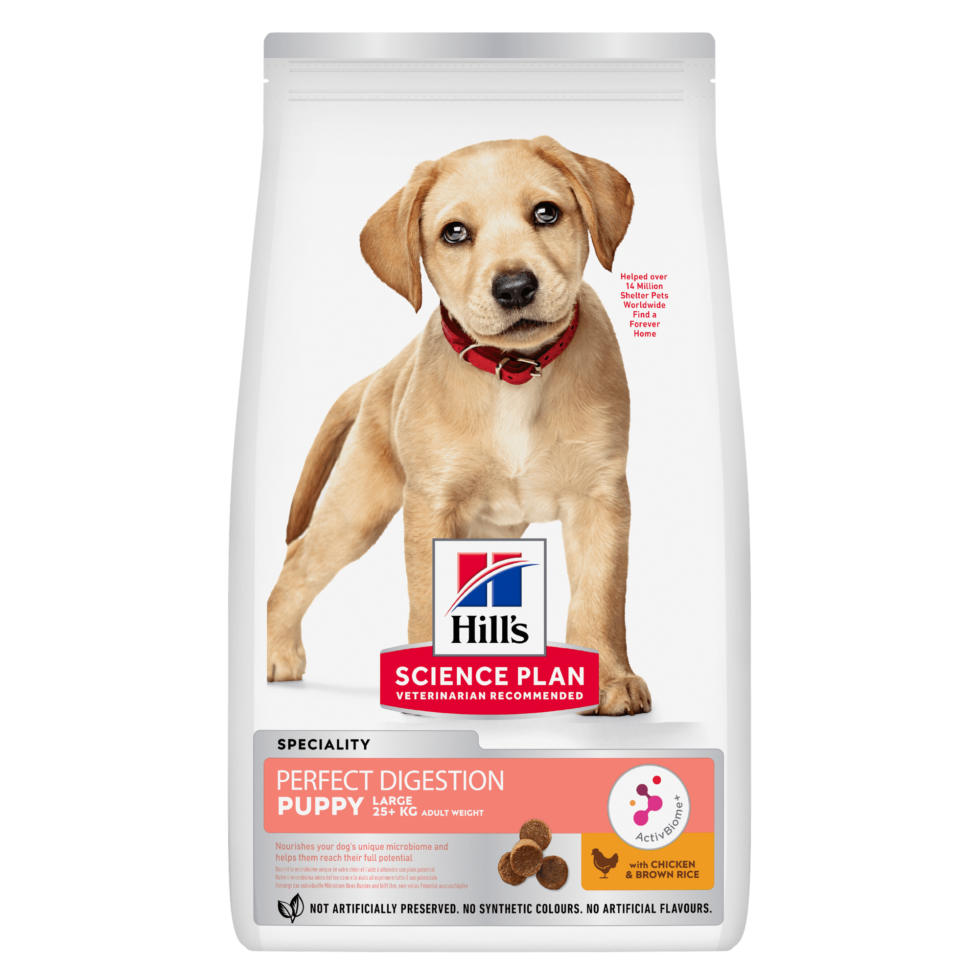 Hill's Science Plan Perfect Digestion Large Breed Puppy Food with Chicken & Brown Rice is premium, 100% balanced & healthy nutrition, with high quality protein to fuel your puppy's energy needs for optimal growth.