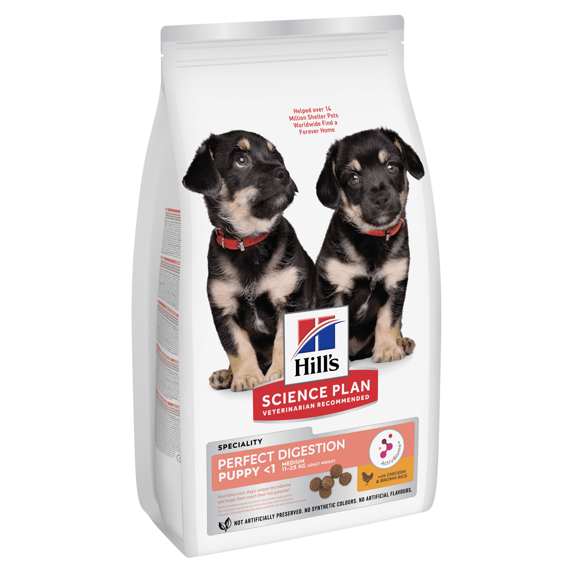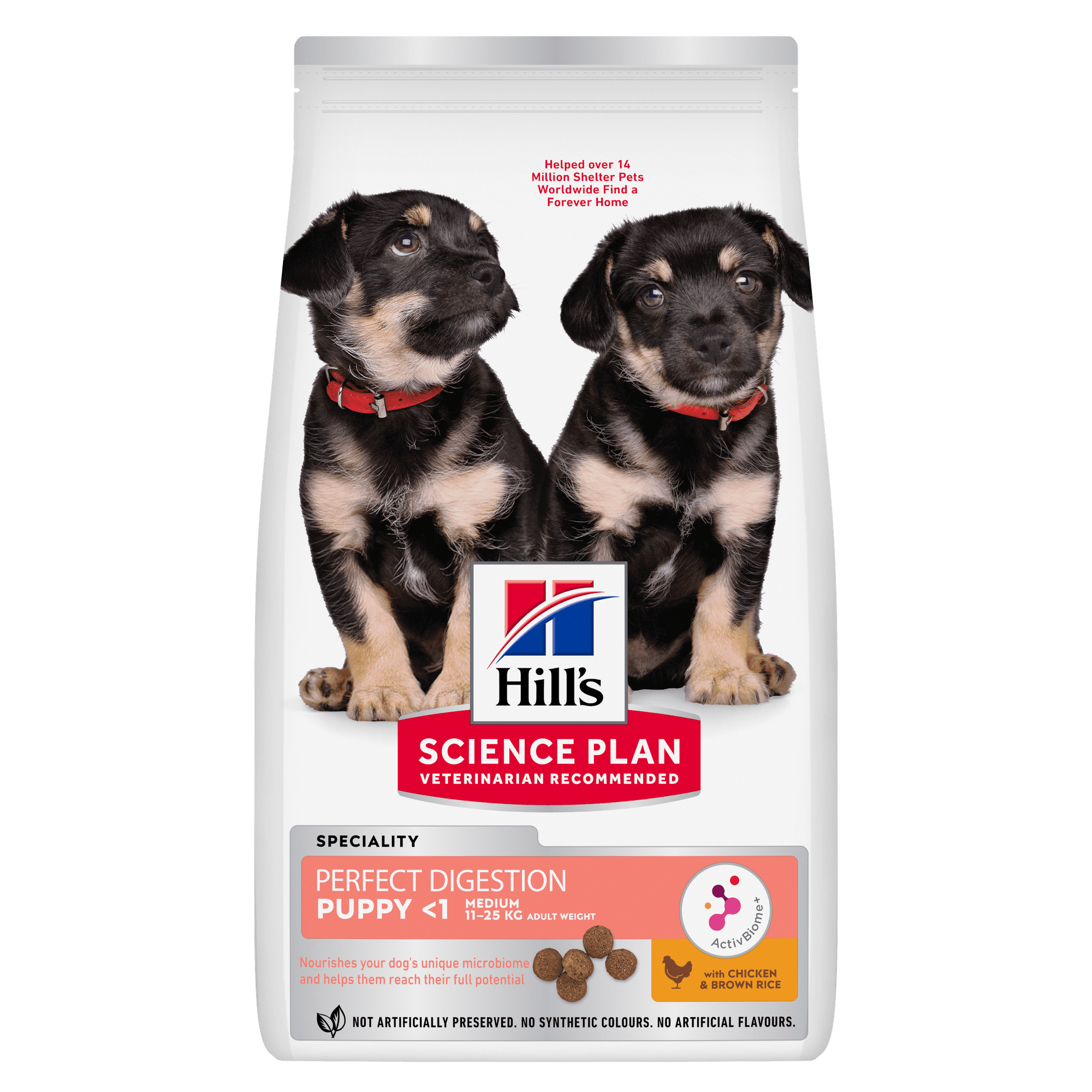 Hill's Science Plan Perfect Digestion Medium Breed Puppy Food with Chicken & Brown Rice is premium, 100% balanced & healthy nutrition, with high quality protein to fuel your puppy's energy needs for optimal growth.