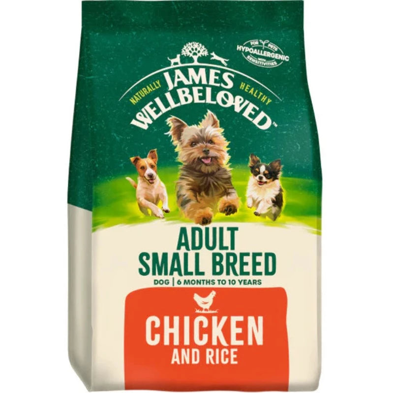 James Wellbeloved Small Breed Chicken & Rice Adult Dog Food. James Wellbeloved naturally keeps your pet's health with carefully chosen ingredients.
