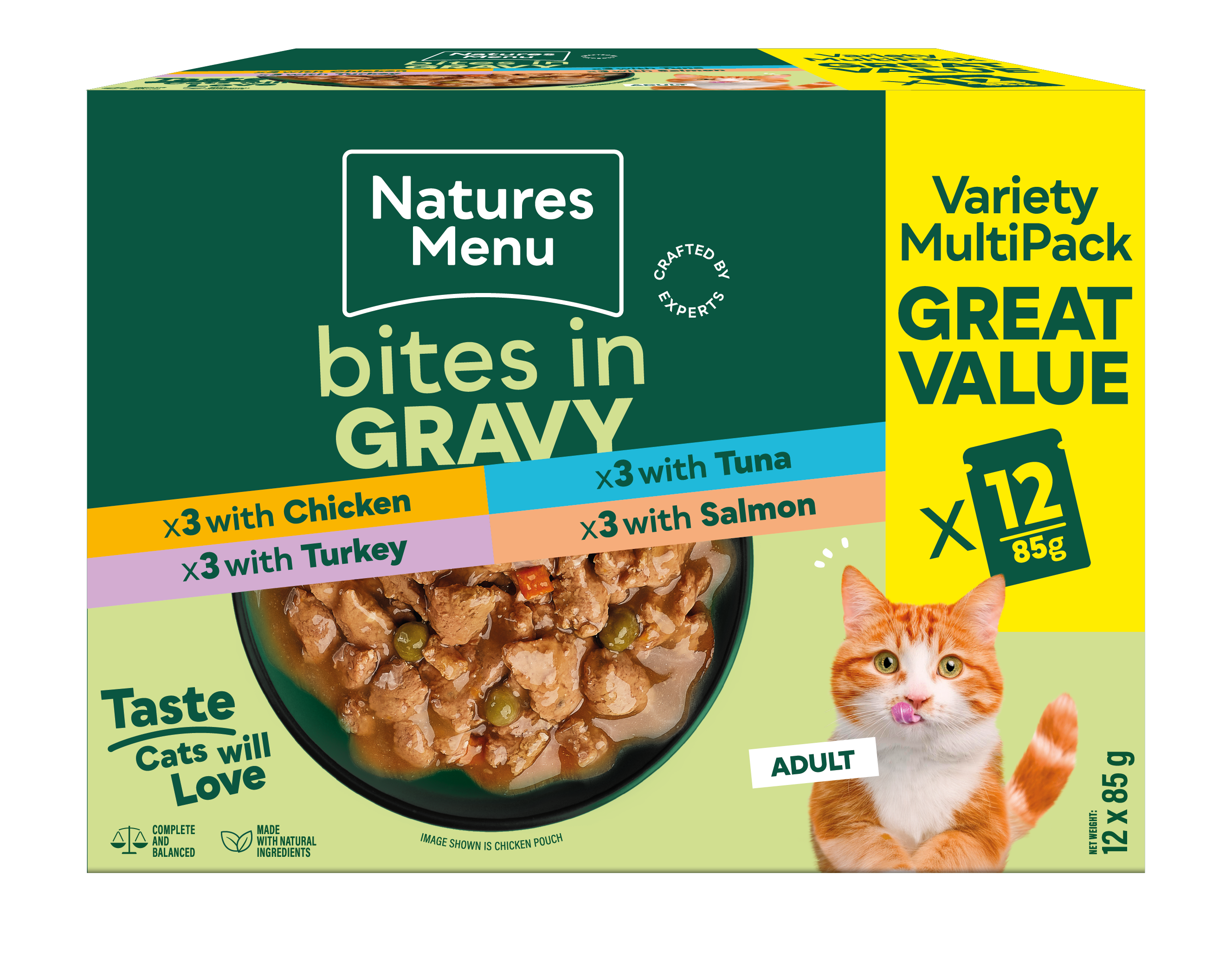 Each of our cat recipes are developed by our in-house experts to be complete and balanced. So when you serve your cat Nature’s Menu Bites in Gravy you know every mouthful is paw-sitively delicious and nutritious!