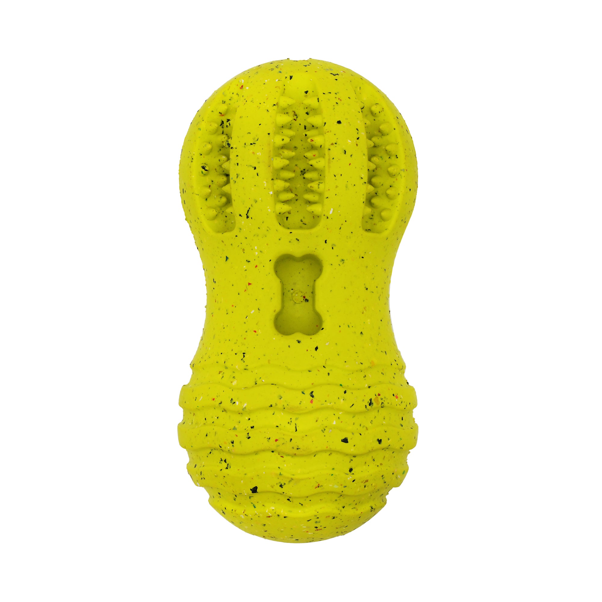 With a weighted base and a weeble-inspired shape, this toy rocks, rolls, and rebounds in unexpected ways, triggering your dog’s natural chase-and-pounce instincts. Add in a treat cavity, squeaker, and textured ridges, and you’ve got a multi-sensory experience built for high-energy play.