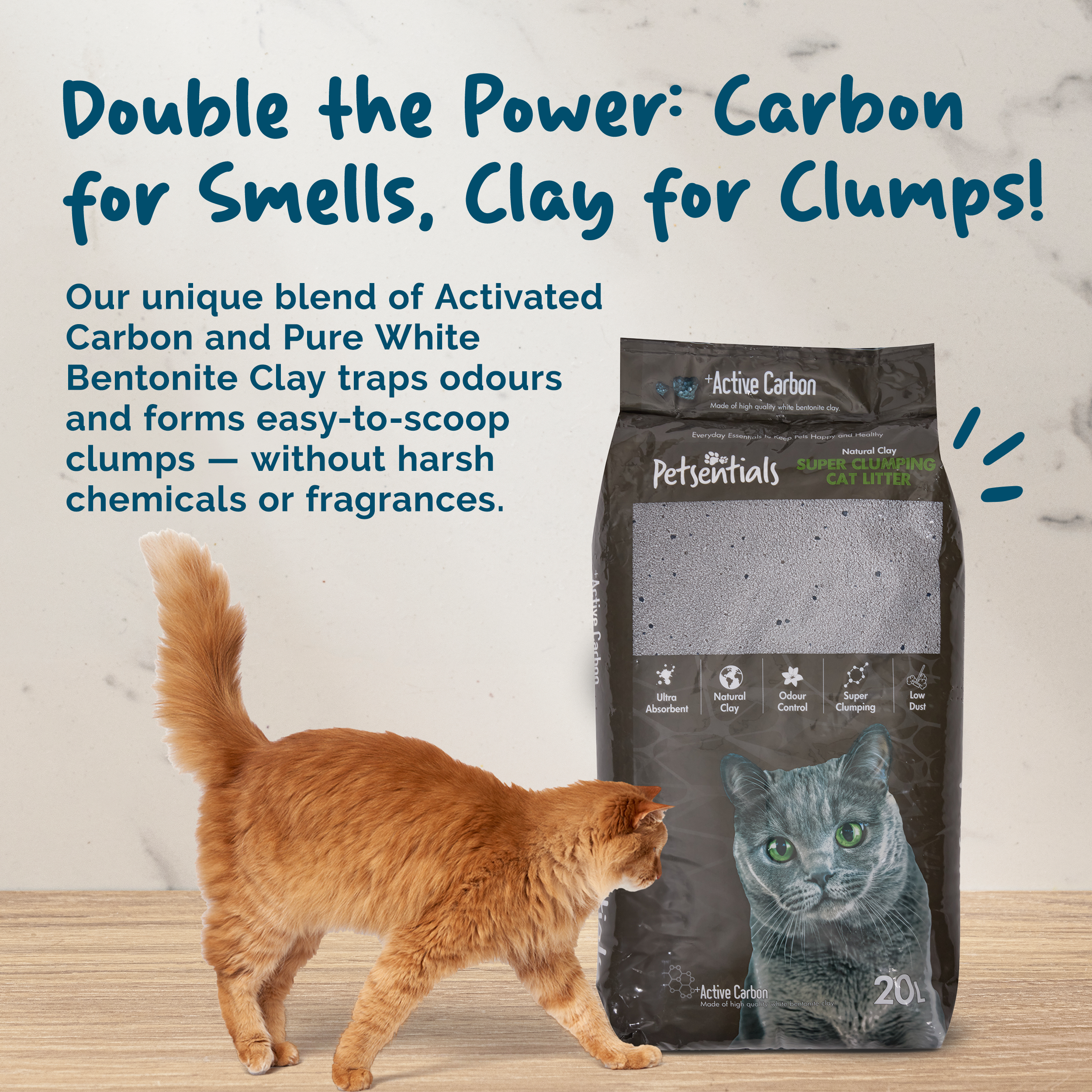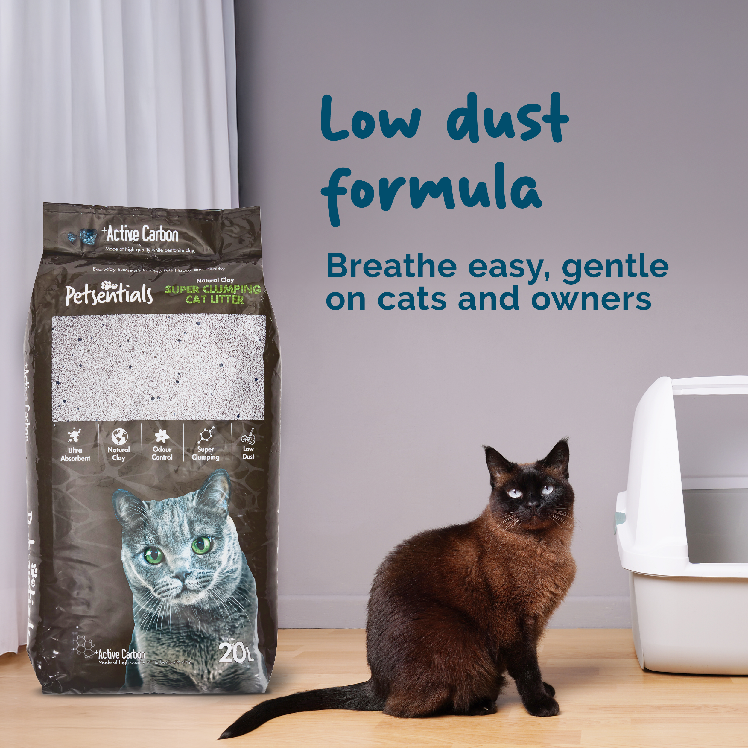 Introducing Petsentials Super Clumping Cat Litter with Activated Carbon - a revolutionary solution that combines natural Bentonite clay with the power of activated carbon to elevate your cat's litter experience.