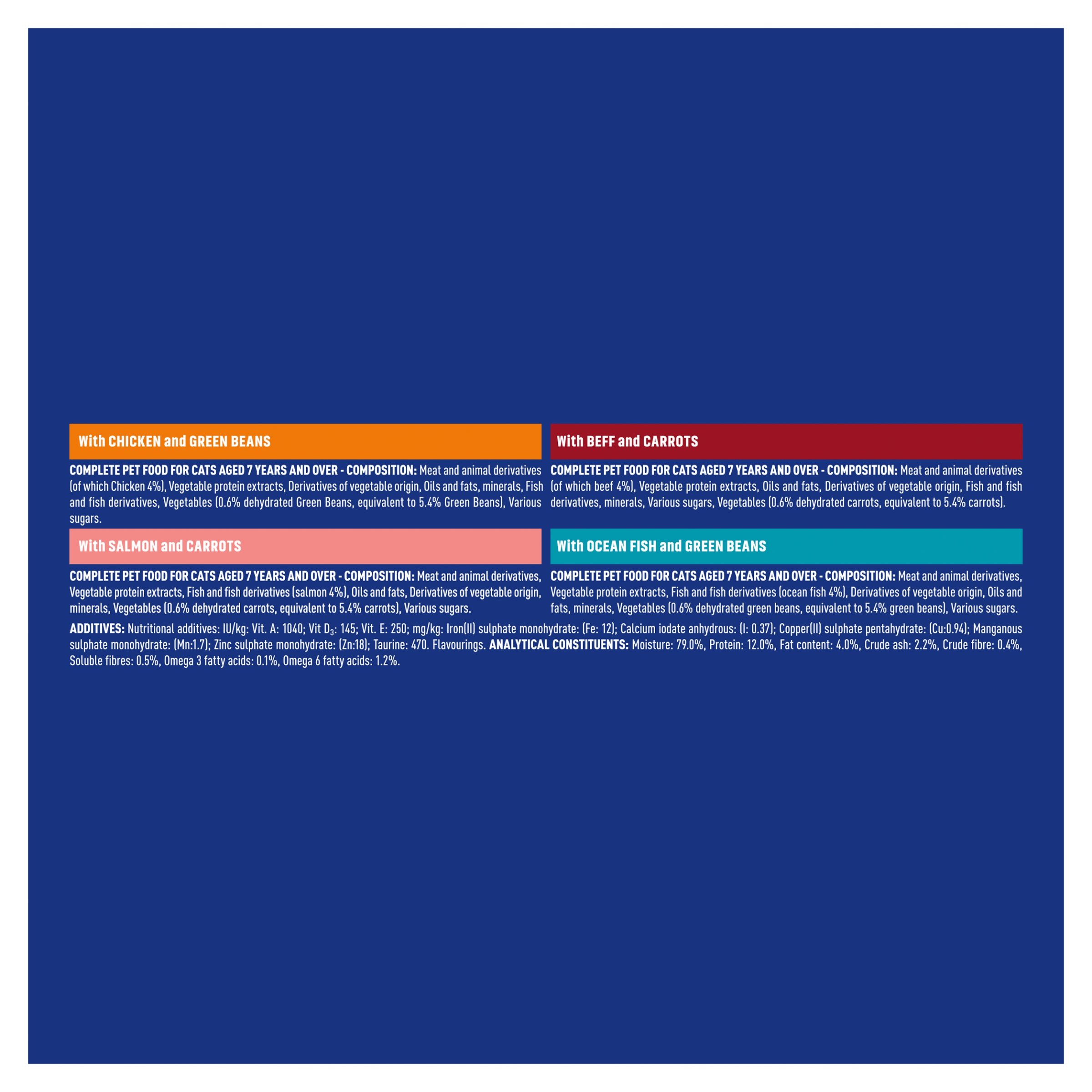Ageing causes natural changes in your cat’s body that can have an effect on some vital functions. A tailored nutrition can help slow down this process. Purina one wet meals are complete and balanced recipes targeting high quality nutrition with delicious taste and developed to help support a healthy gut microbiome –a balance of microorganisms is important to make a positive effect on your cat’s digestive health and overall well-being.From a healthy digestion and natural defences to a shiny coat, you can see visible results on your cat’s health today and tomorrow.