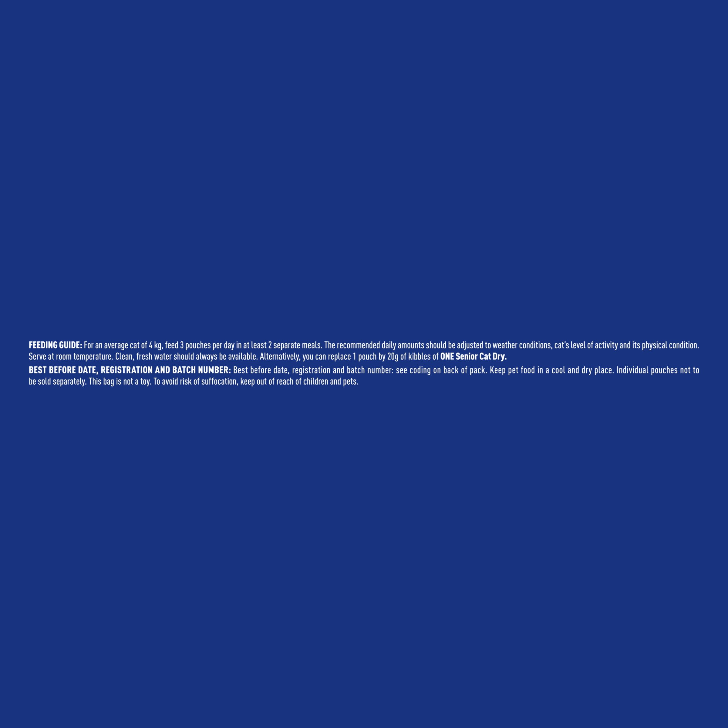 Alternatively, feed 2 pouches per day combined with 10g of kibbles of One Senior Cat Dry.