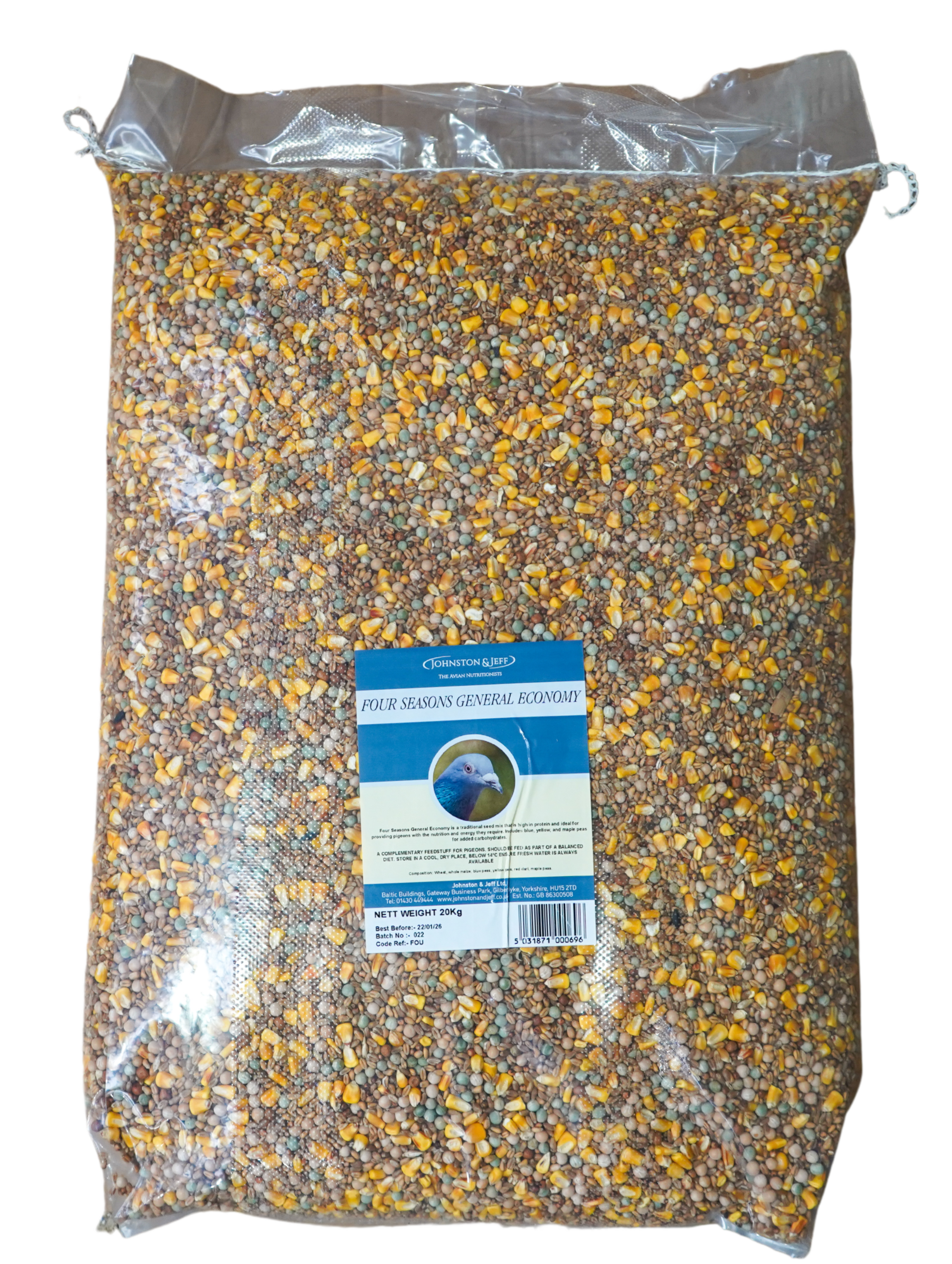 Four Seasons Pigeon Corn is traditional seed mix that is high in protein and ideal for providing pigeons with the nutrition and energy they require. This blend includes blue peas, yellow peas and maple peas for added carbohydrates, and contains only the high-quality ingredients you’d expect from Johnston & Jeff.