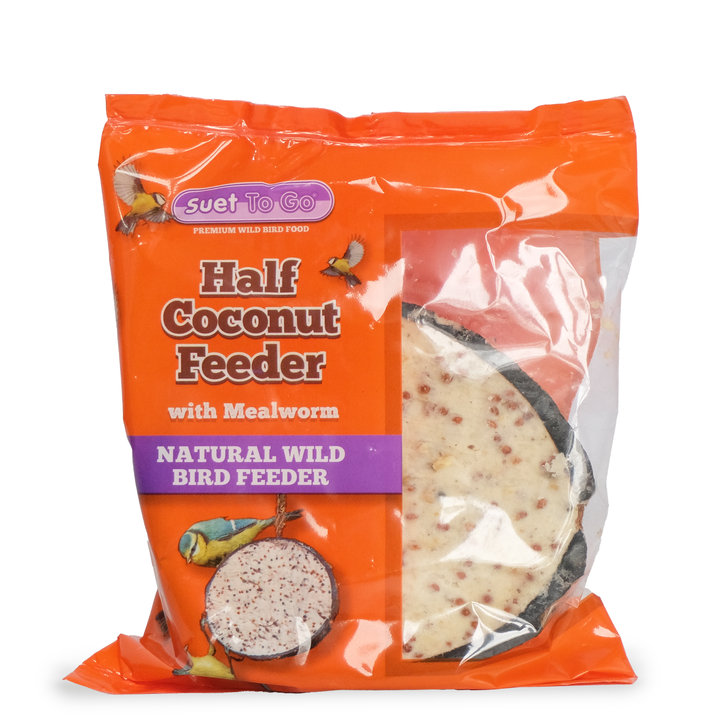 Suet to Go Half Coconut Natural Wild Bird Feeder with Mealworm