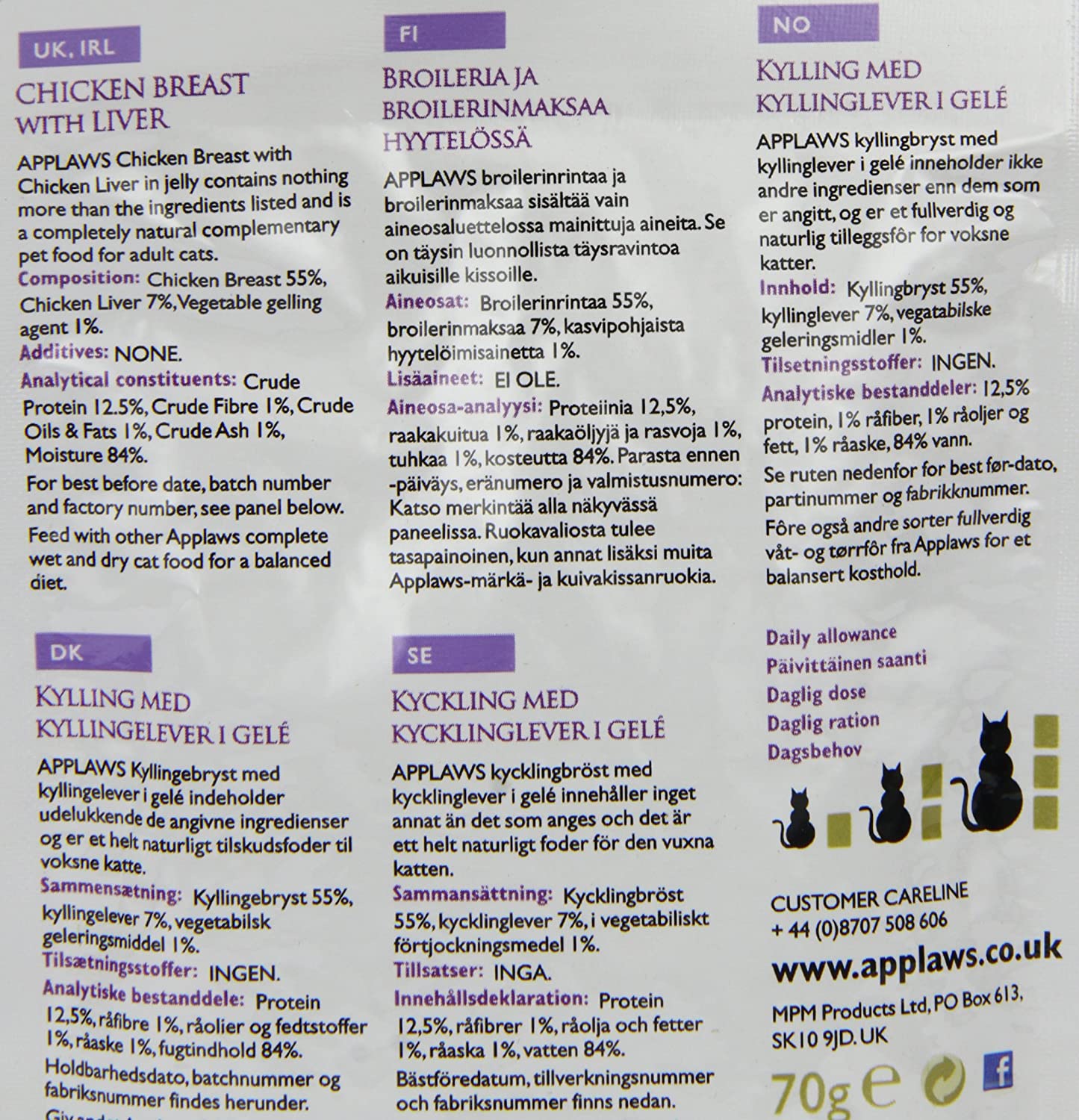 Applaws Chicken and Liver Pouch in Jelly is a premium quality complementary cat food made using only the ingredients listed on the label.