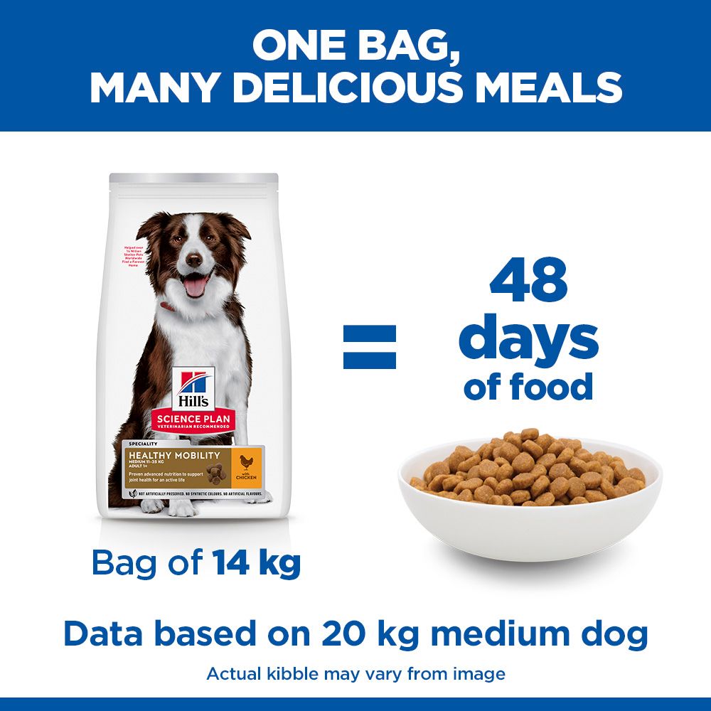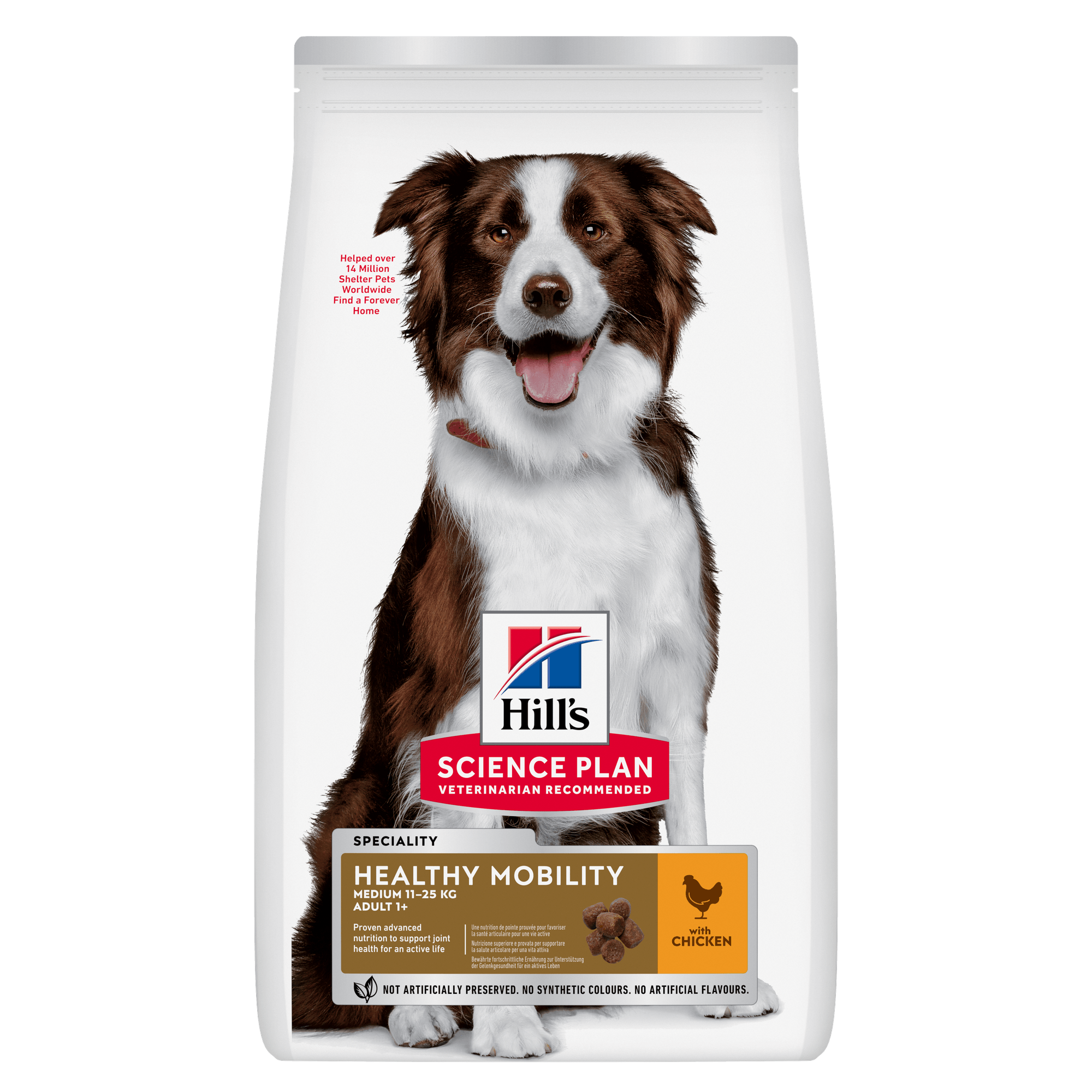 Hill's Science Plan Healthy Mobility Large Breed Adult dog food with Chicken is specifically formulated to support joint health for an active life. Key Benefits EPA from fish oil helps joint cartilage healthy. Proven nutrition to support joint flexibility. Glucosamine & chondroitin are building blocks of healthy cartilage. Healthy Mobility Medium Adult dog food with Chicken is specifically formulated to support joint health for an active life.