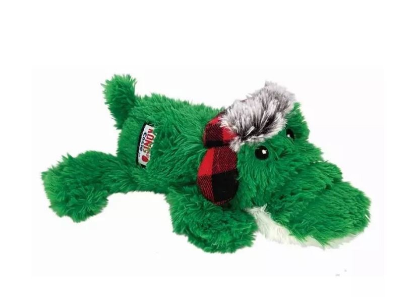 Holiday Cozie Alligator  - Unique holiday-themed toy to give to your dog on Christmas morning. The KONG® Holiday Cozie™ Alligator is soft and luxuriously cuddly plush toy, great for snuggle time and comfort.
