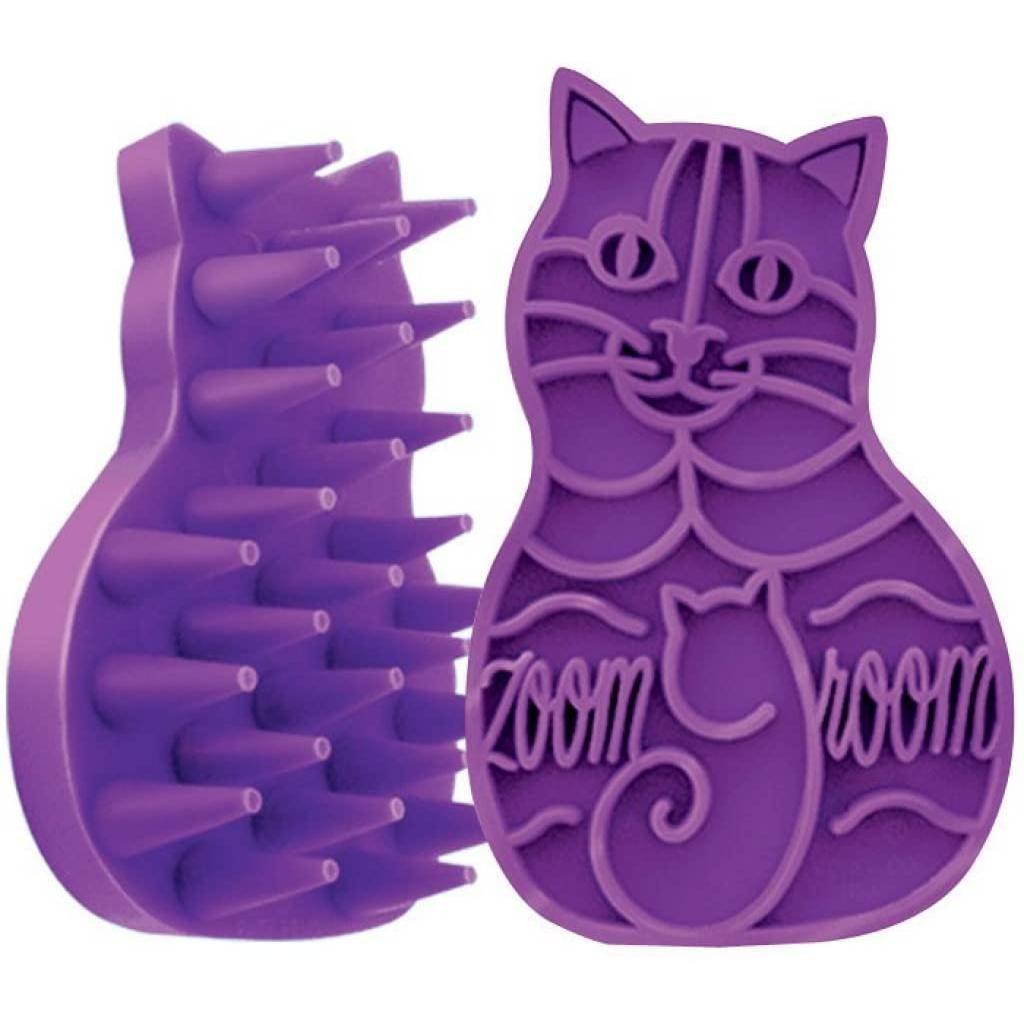 Maintain your pet's healthy coat with the KONG Zoom Groom Cat Brush! The Zoom Groom brush is the quick and easy way to groom your cat and remove loose hair. Its firm yet flexible teeth gives your pet a soothing massage, and act as a magnet for loose hair. The gentle massage action calms stressed or anxious cats. Regular grooming with this brush can help to condition skin and reduce hairballs.
