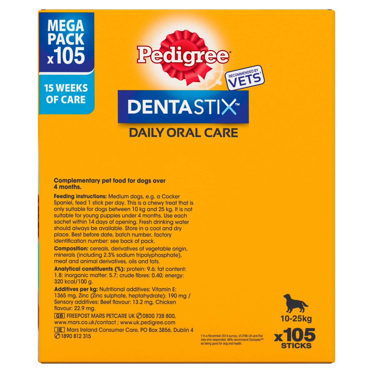 Pedigree Dentastix Daily Oral Care chews help keep your medium dog’s teeth and gums healthy. Feed one stick a day to help reduce tartar build-up by up to 80%.
