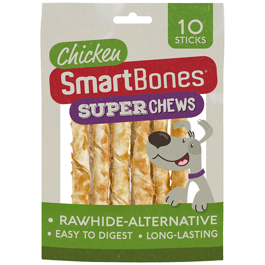 Smartbones are the smart way to treat your pet - A tasty rawhide alternative chew that dogs can't resist. Smartbones SuperChews are a healthy rawhide-alternative for dogs. This tasty recipe is made from highly digestible collagen, for a longer-lasting dog chew which is tough enough for strong chewers.