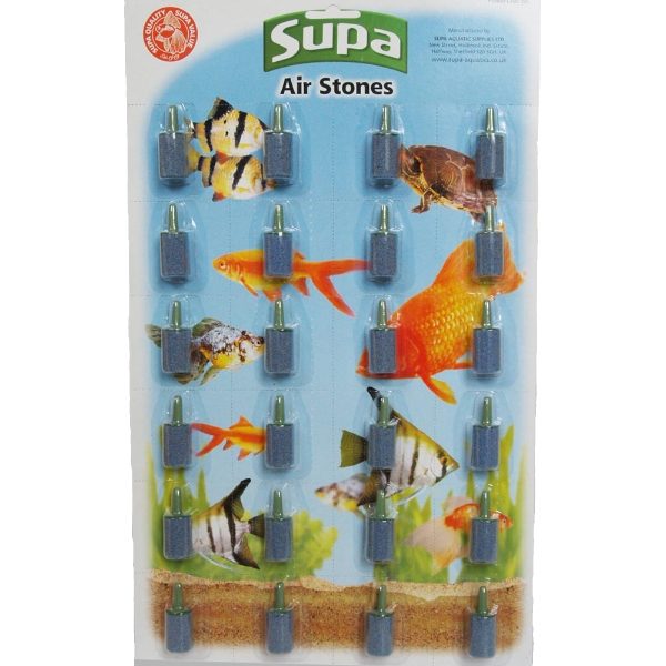 Supa Airstones, when connected to an air supply, simply diffuse the air via a fine mist of bubbles into the aquarium thus oxygenating the aquarium. Supa air stones are made from non-toxic quality materials and are a great aid for aerating a fish tank. Designed to fit airline tubing with an internal diameter of 4mm and an external diameter of 6mm. Part of an extensive range of airline accessories from Supa Ltd Hints & Tips: Supa air stones provide, when connected to an air pump, a fine mist of air bubbles. This is achieved as the air stone is made from high quality sintered ceramic material which means that the stone has many fine holes in it which allows the air to escape into the water. The air, when it enters the aquarium or fish tank, provides aeration of the water plus stimulates the circulation of the water which stops the formation of stagnant water. Air stones should be cleaned when needed and will also need to be replaced occasionally to ensure they are working to their maximum efficiency. The length of time between changing your air stone can vary between a few months and a few years as the life of the air stone will be affected by the PH of your water, what chemicals your use in fish tank etc.