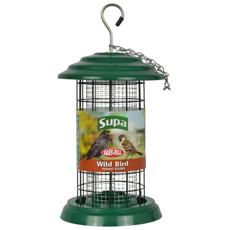 The Supa Easy Fill 8in/20cm Plastic Fortress Peanut Feeder feeder has at the base a unique access port in the base that allows the feeder to be filled with ease. It is advisable to fill the feeder over a container such as a box or bucket so that - in the event of spillage - food can be easily retrieved. The secondary metal cage is designed to keep Squirrels and larger birds from the Peanuts. Easy to fill and; maintain and will provide hours of enjoyment as you watch the birds feed. It is always recommended you feed whole peanuts from a peanut feeder as it has been know for fledglings and; small birds to choke on whole peanuts. A peanut feeder ensures that the birds can only eat a small piece of the nut at a time. Peanuts are a favourite of garden birds as it is a they are high in energy and a rich source of proteins, fats and fibre. It is always worthwhile cleaning your feeder occasionally with warm water and; a mild detergent or a disinfectant solution to avoid a build-up of bacteria. Ensure in your garden that the wild birds have access to a source of water at all times. The Supa Wild Bird Water Drinker is ideal for this purpose. Made in the UK.