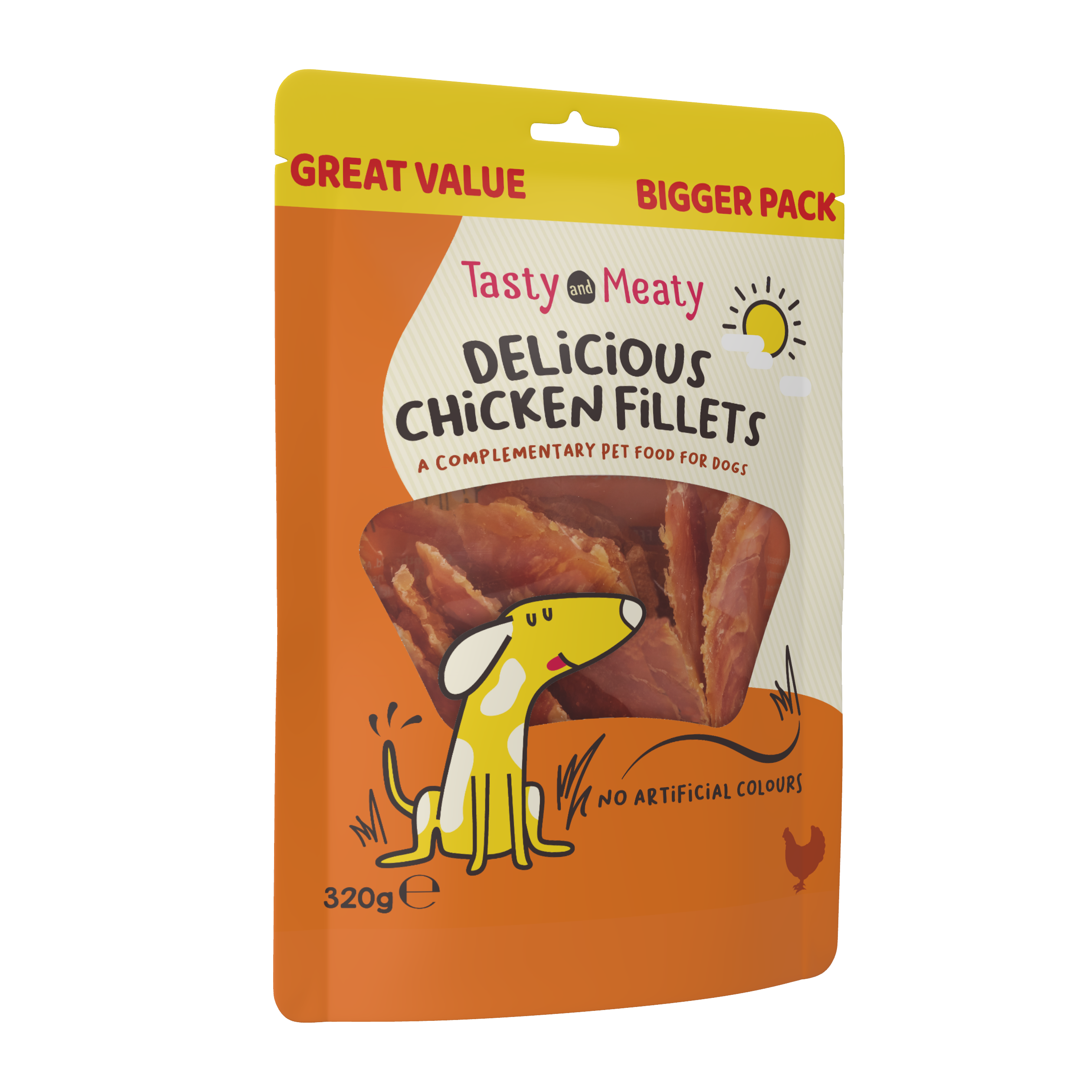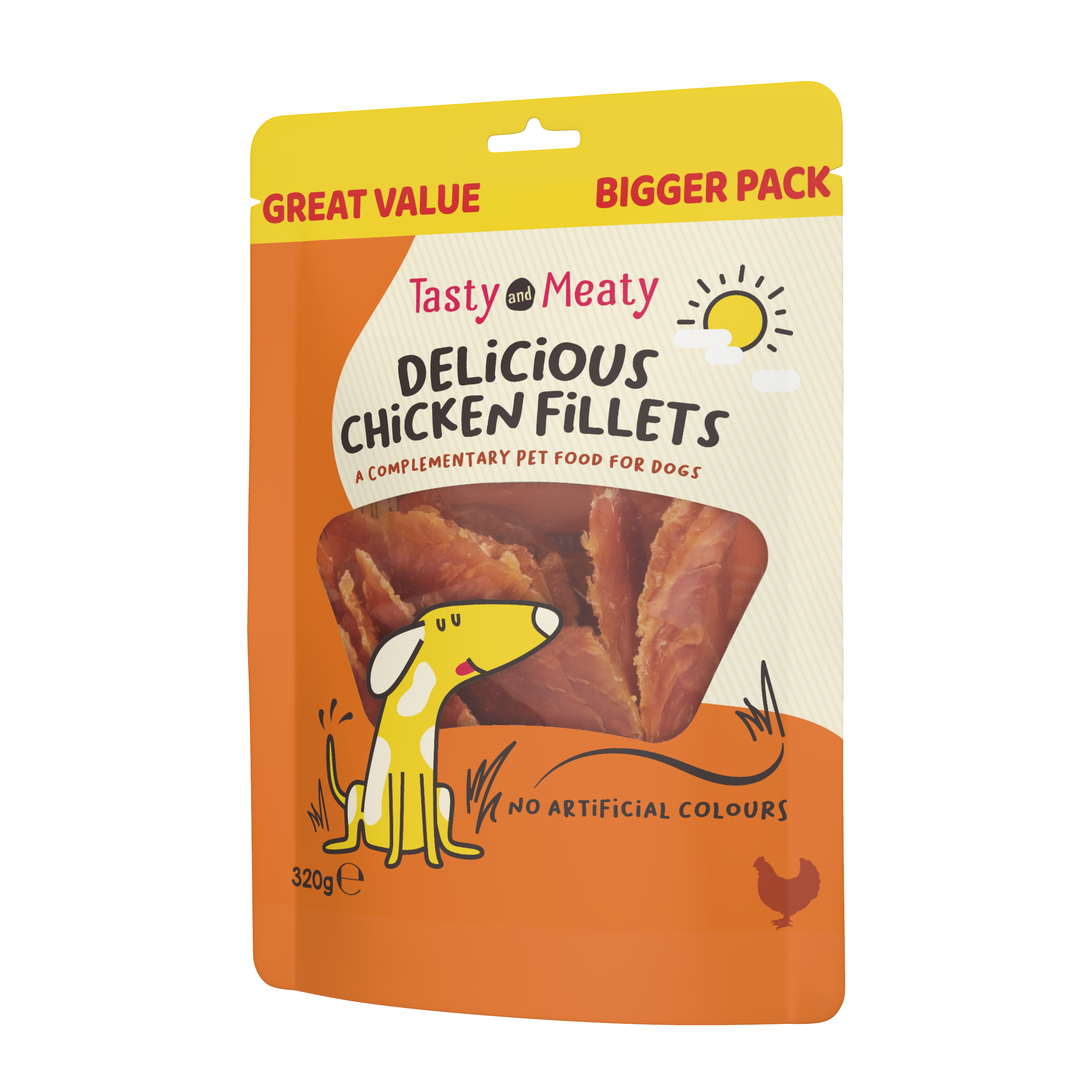 Whether used as a training reward, a daily treat, or just a way to show your love, our Tasty & Meaty Chicken Fillets are a lean and protein-rich alternative to beef or pork, perfect for adult dogs of all breeds and sizes.